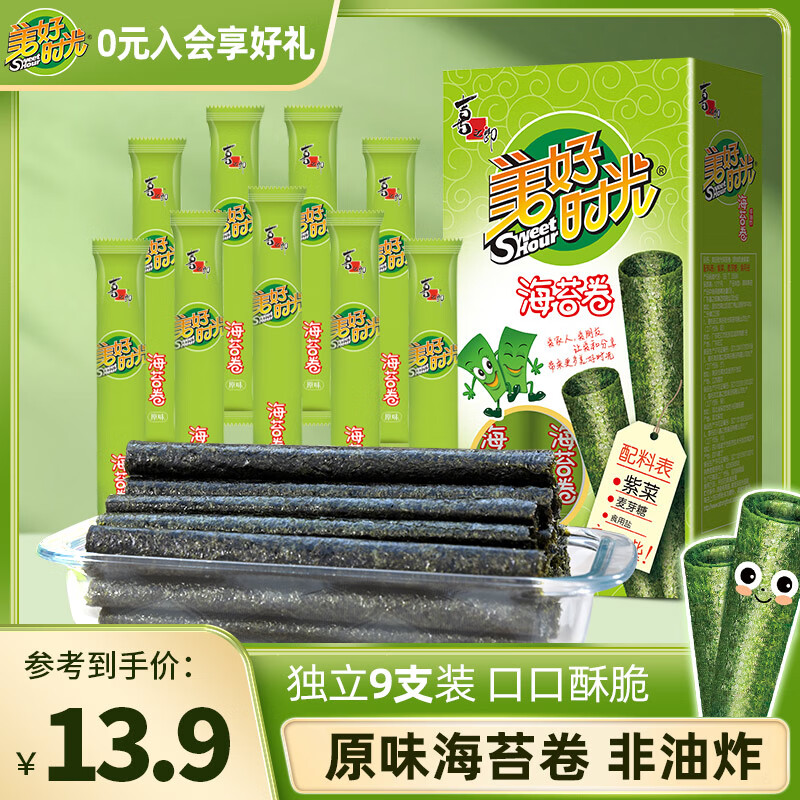 美好时光原味海苔卷9支共26.5g 非油炸 即食紫菜 儿童零食休闲零食