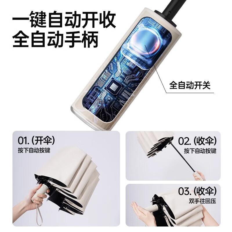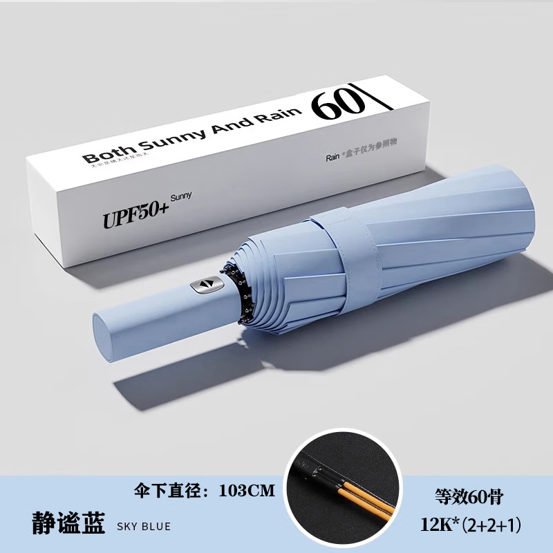 108骨雨伞自动男女折叠加大太阳伞晴雨两用伞防晒防紫外线遮阳伞 全自动【60根双龙骨晴雨伞】天蓝
