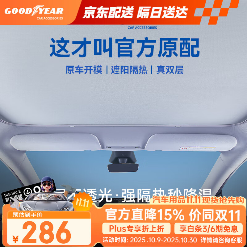 固特异(Goodyear)汽车遮阳帘适用于特斯拉焕新ModelY25款隔热防晒天窗遮阳挡双层