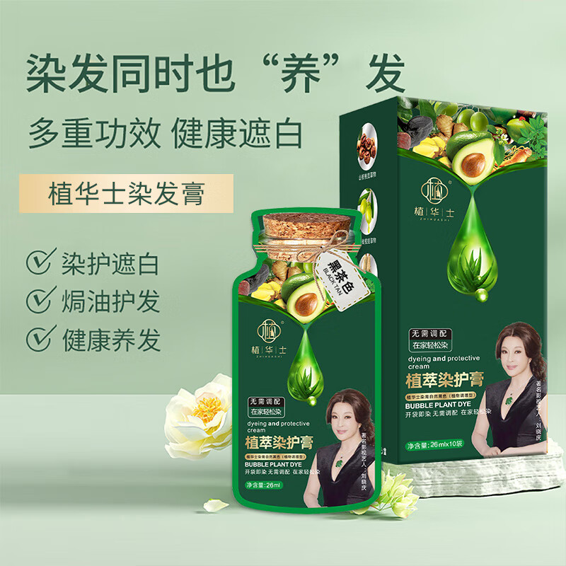 植华士 染发剂 植物纯染发膏 果染膏 盖白自己在家染发 黑茶色26mlx10袋