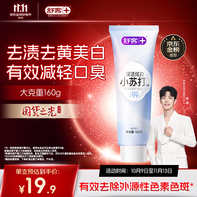 舒客小苏打牙膏 美白牙齿减轻口臭含氟防蛀160g薄荷味 新老随机发