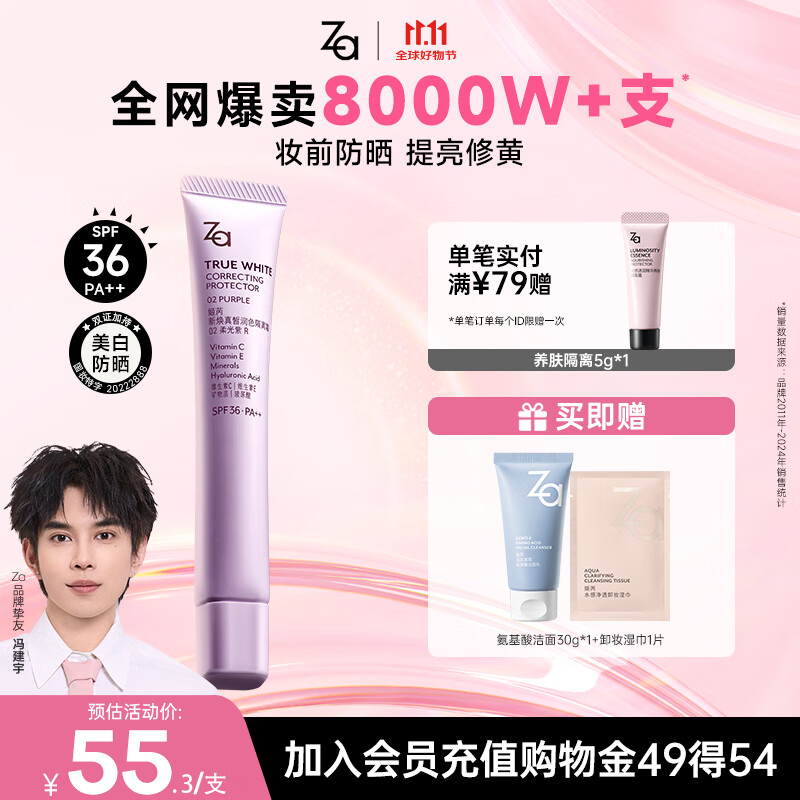 姬芮(ZA)冯建宇推荐 紫色懒人素颜霜润色隔离霜防晒遮瑕霜妆前乳35g SPF36