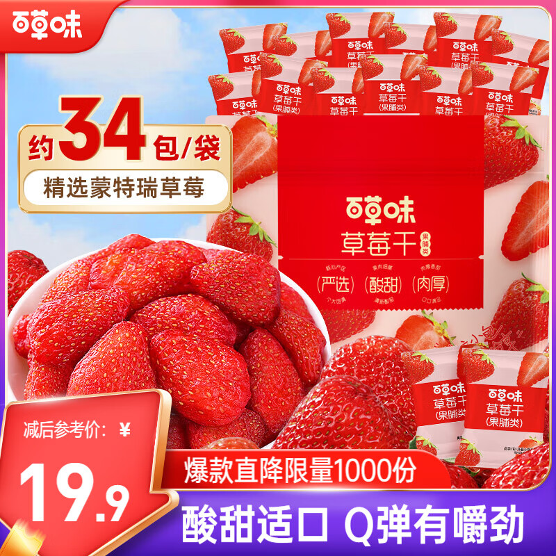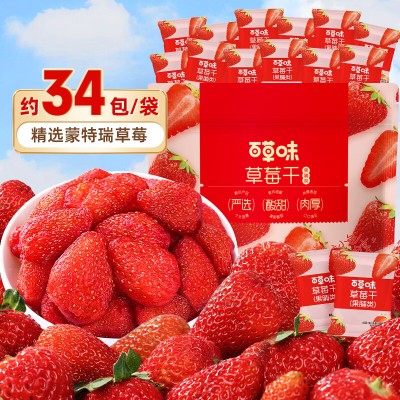百草味草莓干258g果脯果干蜜饯烘焙休闲零食办公室解馋独立小包装