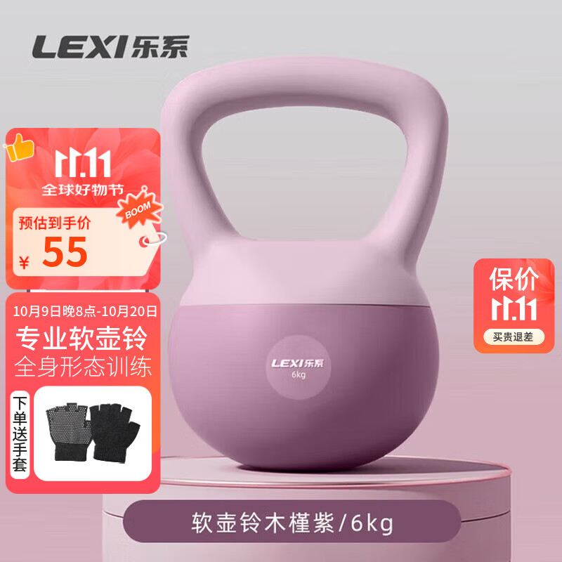 乐系(lexi)软壶铃女健身家用练臀软式壶铃运动力量训练提壶哑铃 5公斤木槿紫