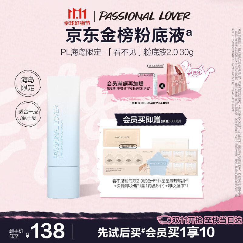 恋火(Passional Lover)PL海岛限定看不见粉底液2.0遮瑕版30g象牙白 轻薄水润持妆粉底霜