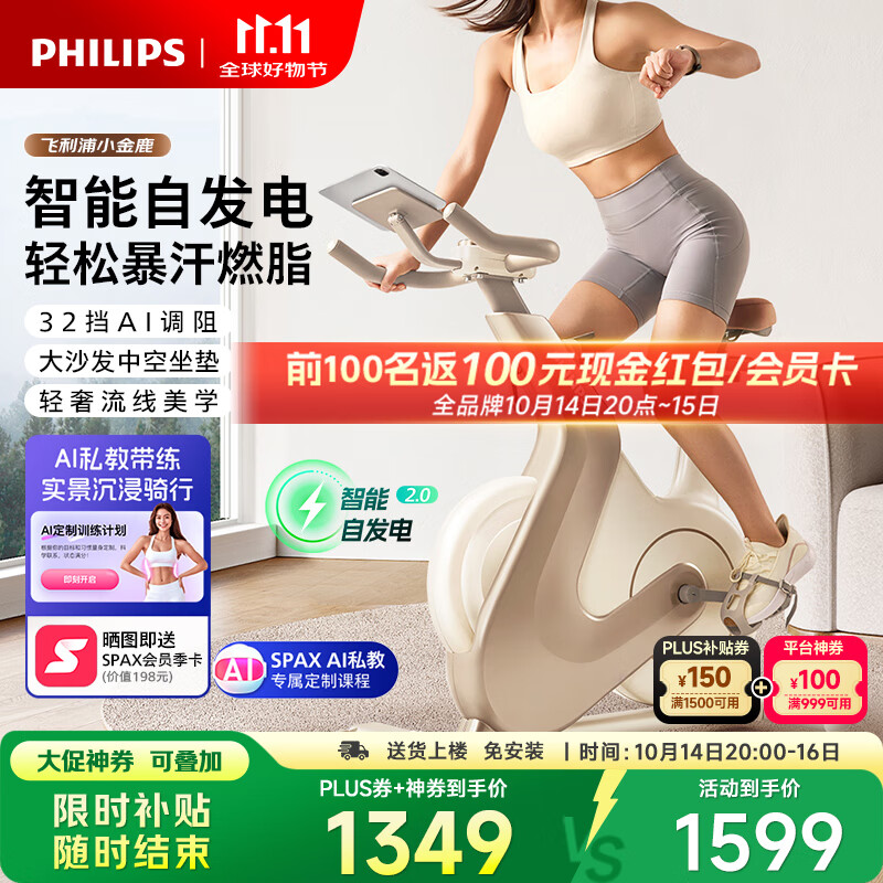 飞利浦家用动感单车智能自发电健身器材减肥运动室内自行车小金鹿3102B