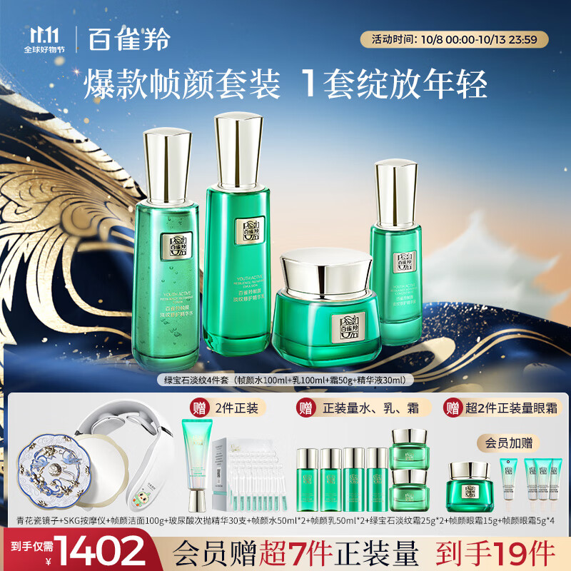 百雀羚(PECHOIN)护肤礼盒帧颜(水乳精华面霜)抗皱品质国货
