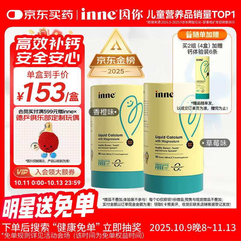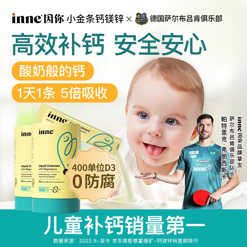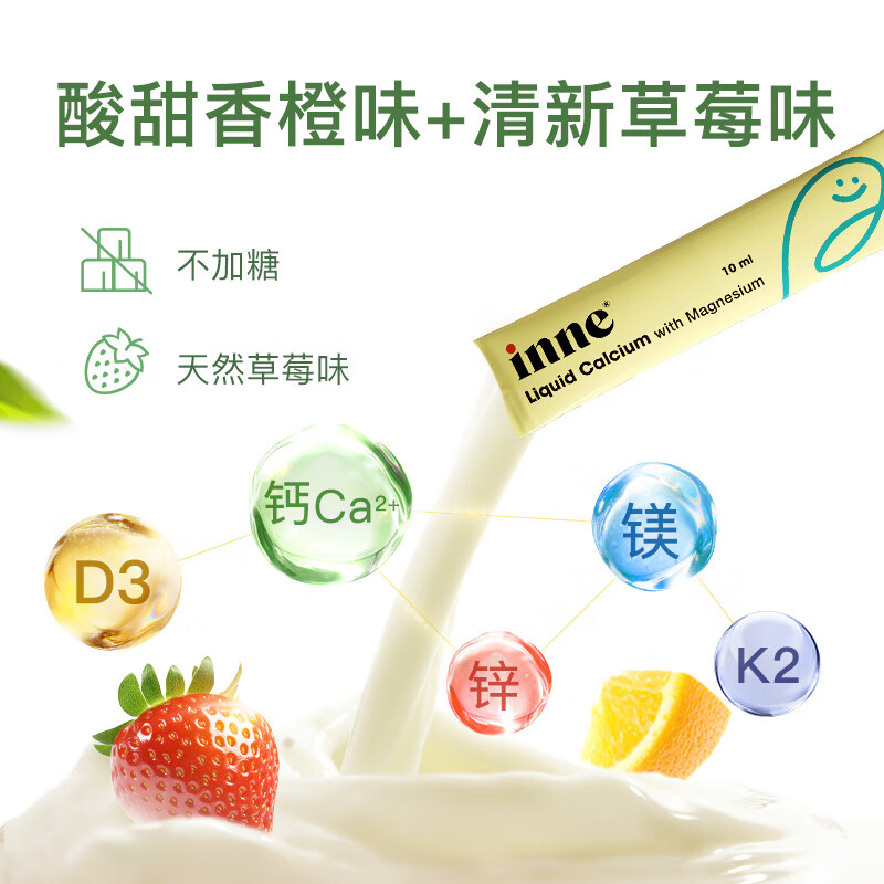 Inne因你钙镁锌小金条液体钙儿童钙维生素d3婴儿钙草莓味+香橙味