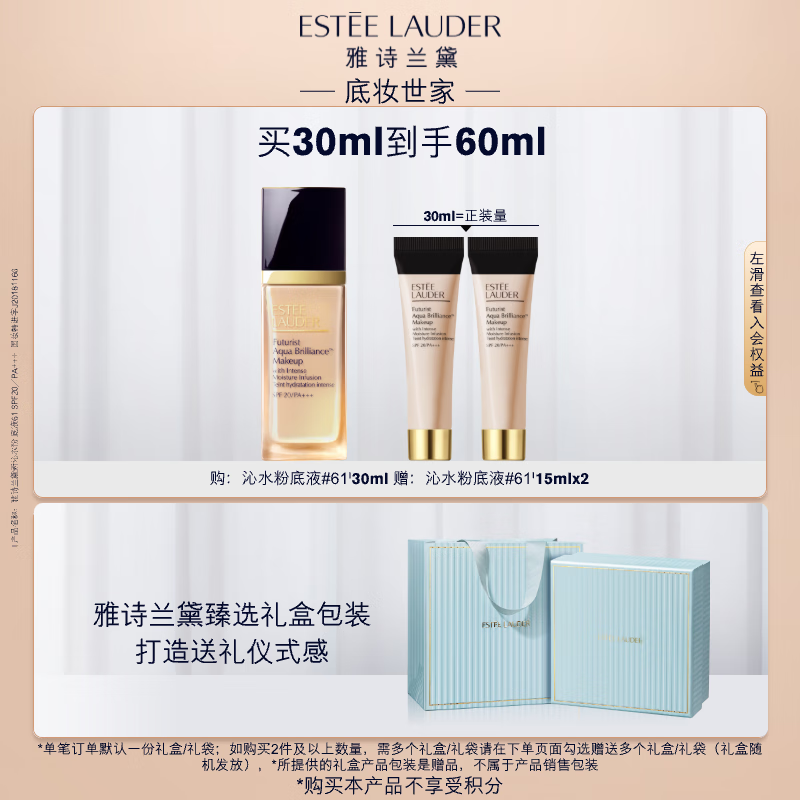 雅诗兰黛沁水粉底液61#冷象牙白(1C0)30ml干皮持久遮瑕化妆品礼盒生日礼物