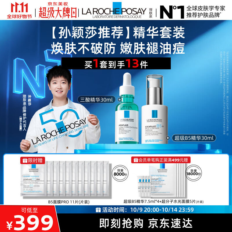 理肤泉【孙颖莎推荐】双精华套装(三酸30ml+B5精华30ml)修护保湿护肤品
