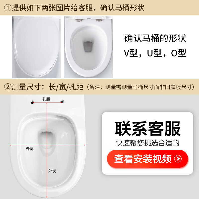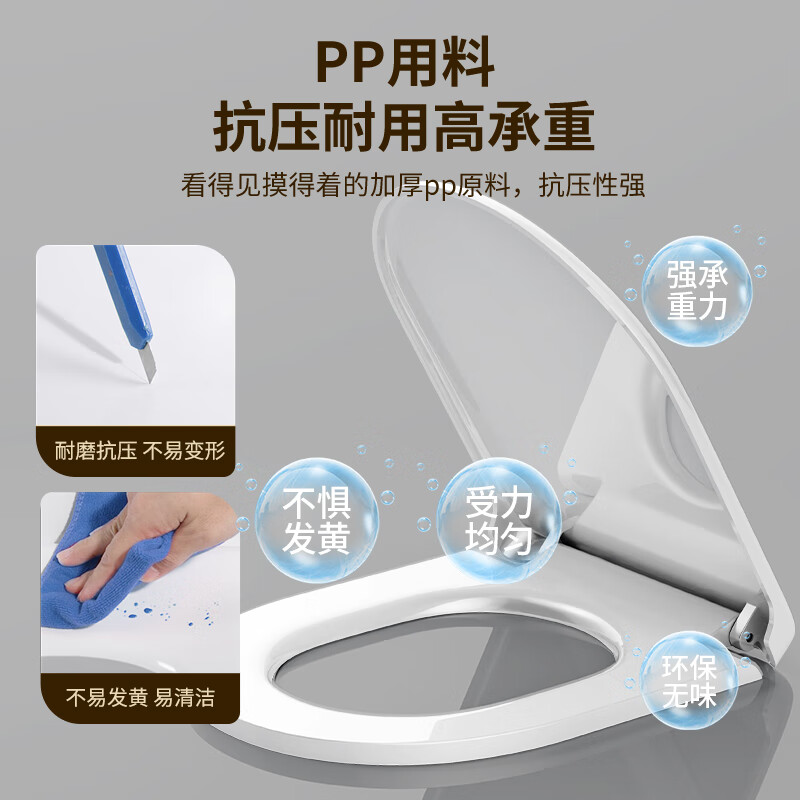 BSITN缓降马桶盖u型加大坐便器盖子通用马桶圈配件加厚快拆马桶圈B9061