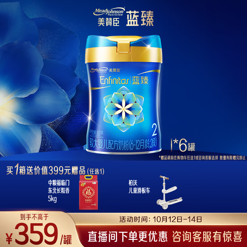 美赞臣蓝臻 2段奶粉 较大婴儿配方奶粉(6-12月)820g*6乳铁蛋白 新国标