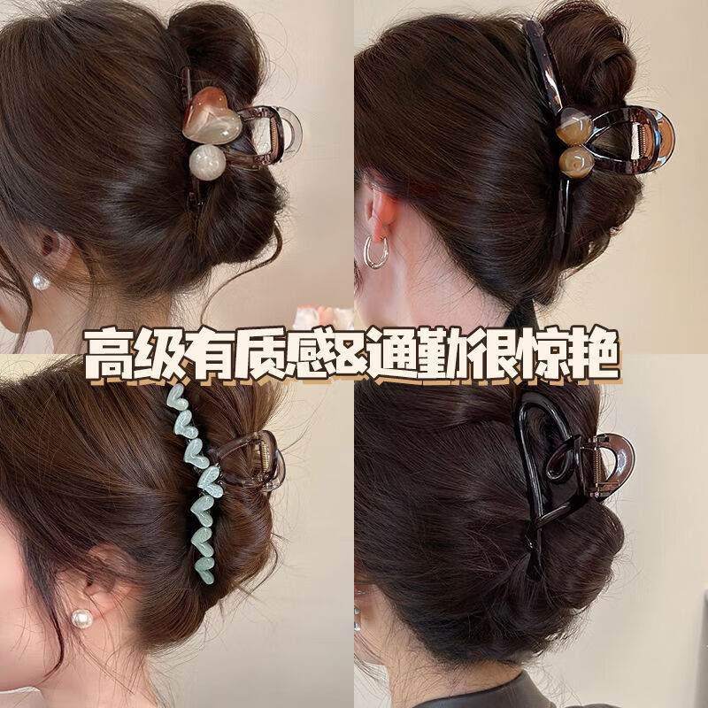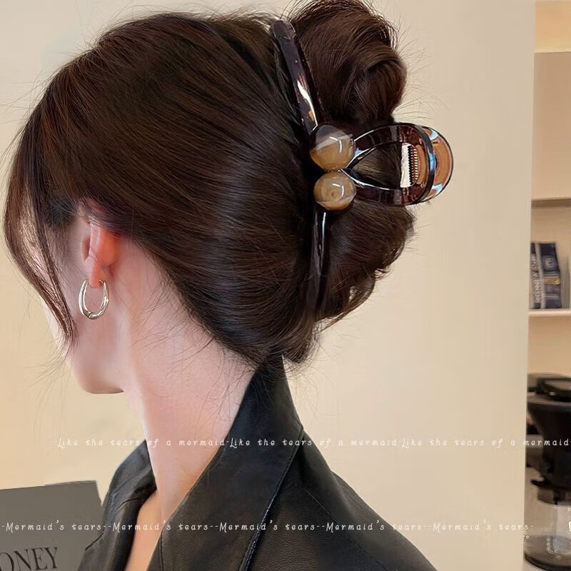 美发工具高级感圆球抓夹时尚简约女发量少半扎发鲨鱼夹后脑勺发卡 书瑶2件套 新品特惠