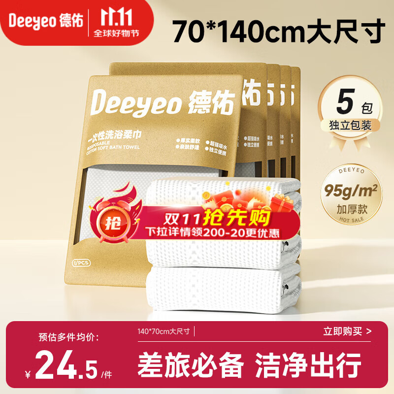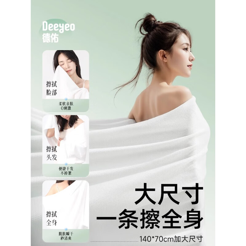 德佑一次性浴巾5条装加大加厚单独包装柔软舒适酒店用品便携旅行装