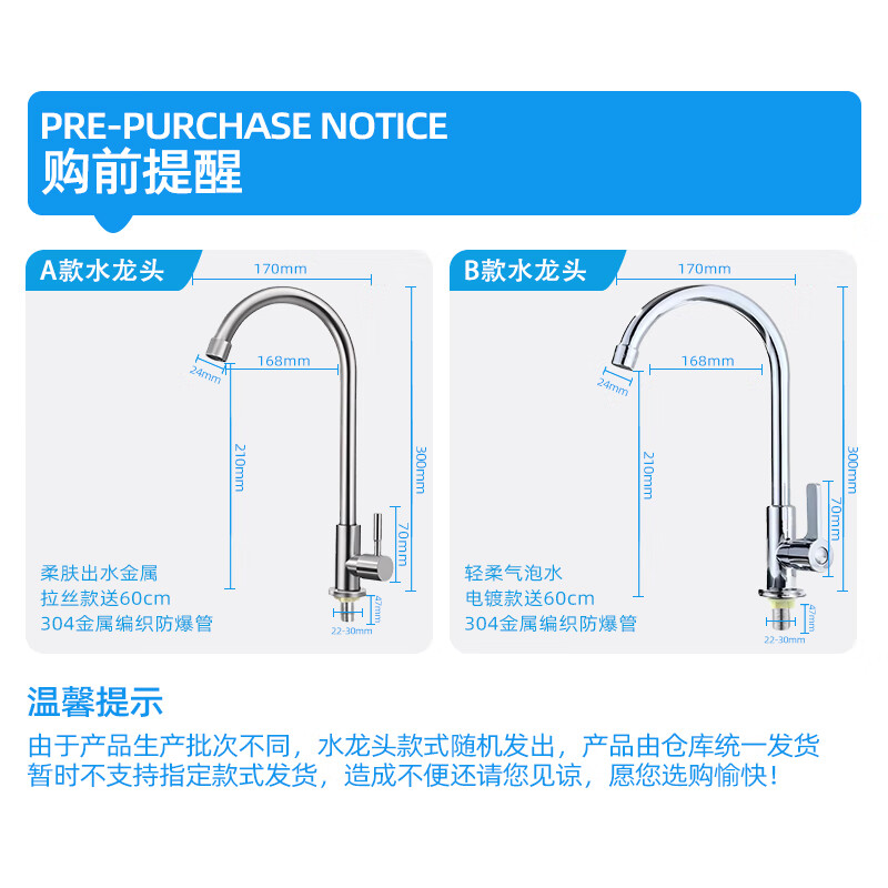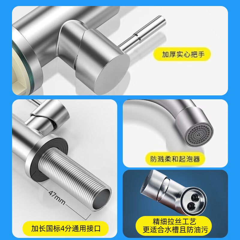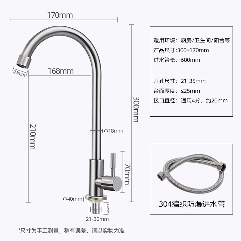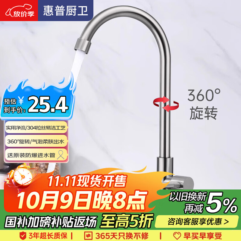 惠普厨房水龙头不锈钢单冷龙头阳台洗衣池水槽防溅360°旋转菜盆龙头