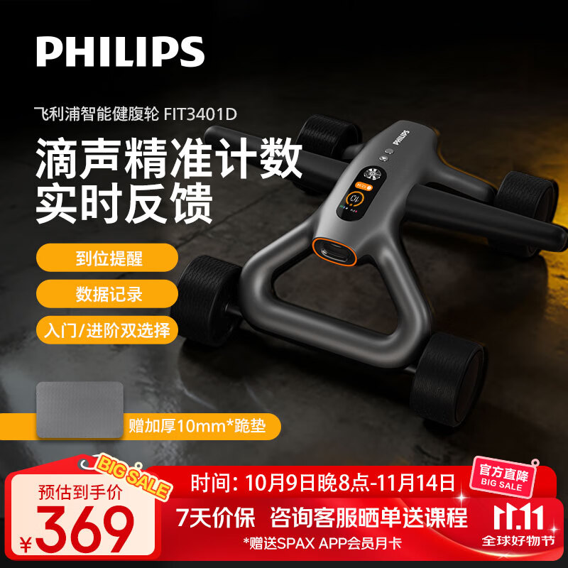 飞利浦智能健腹轮 自动回弹肘撑腹肌轮平板支撑卷腹健身训练