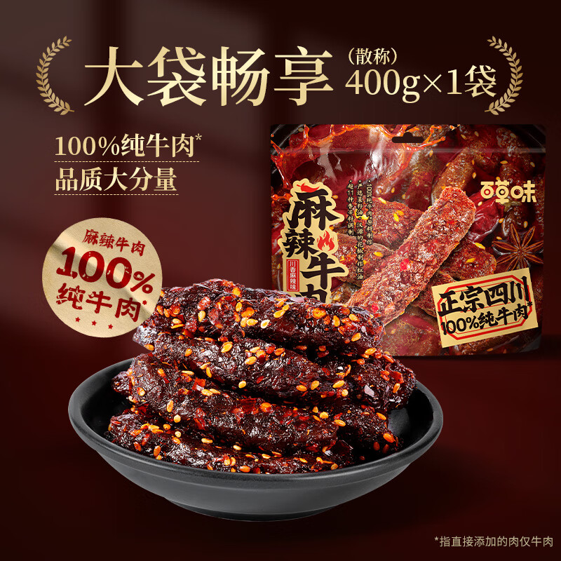 百草味麻辣牛肉散称400g 休闲肉类零食夜宵小吃解馋零食