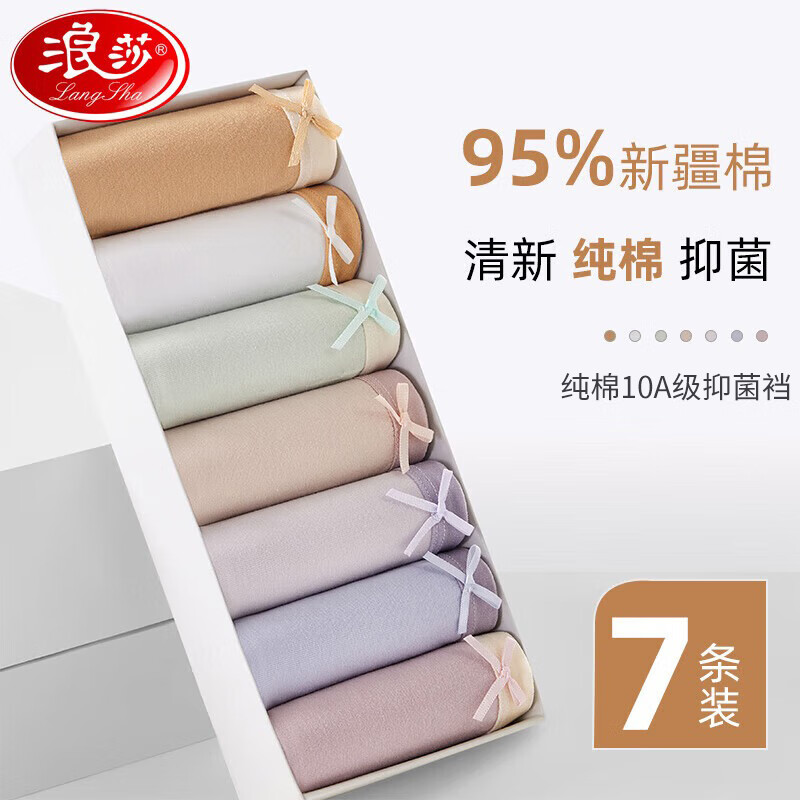 浪莎女士内裤女纯棉裆7条星期裤简约情人节少女裤衩透气清新纯欲裤头