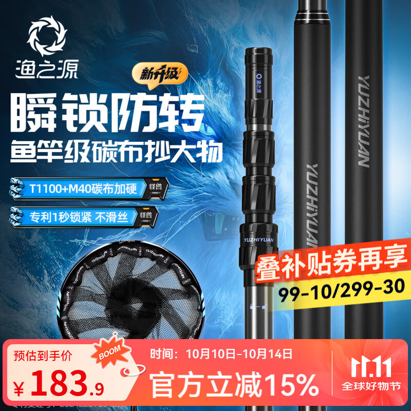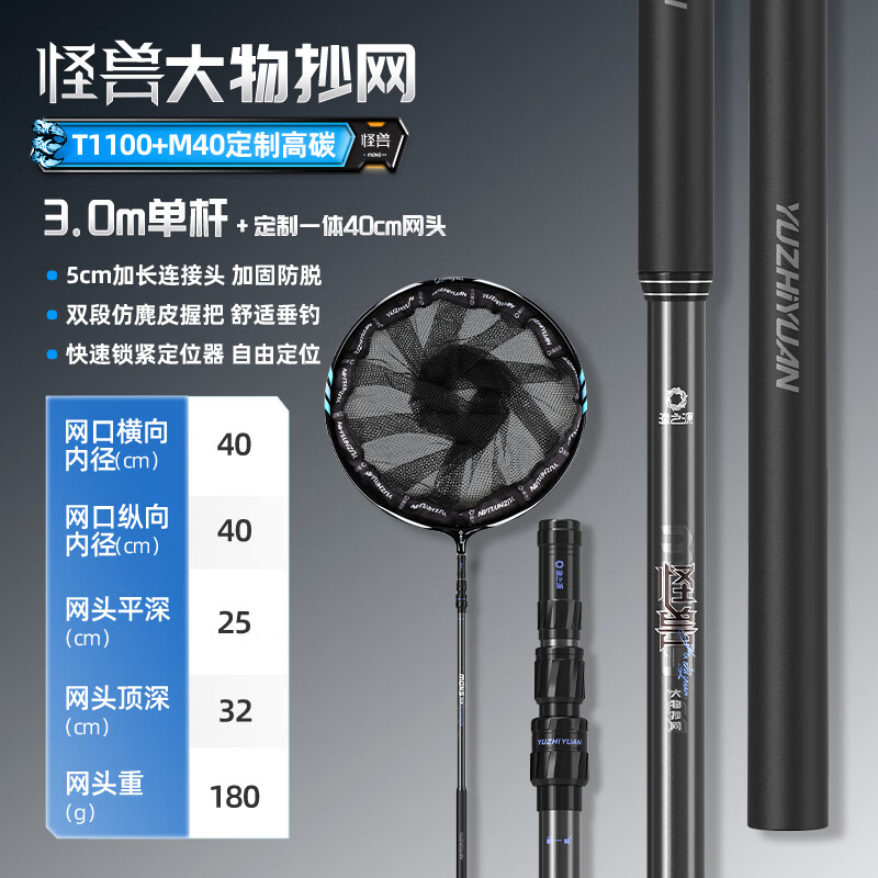 渔之源抄网碳素黑坑超轻超硬大物抄网竿裸竿抄网全套巨物捞鱼网兜套装 3.0m 【稳抄大物】杆+40cm定制一体网头