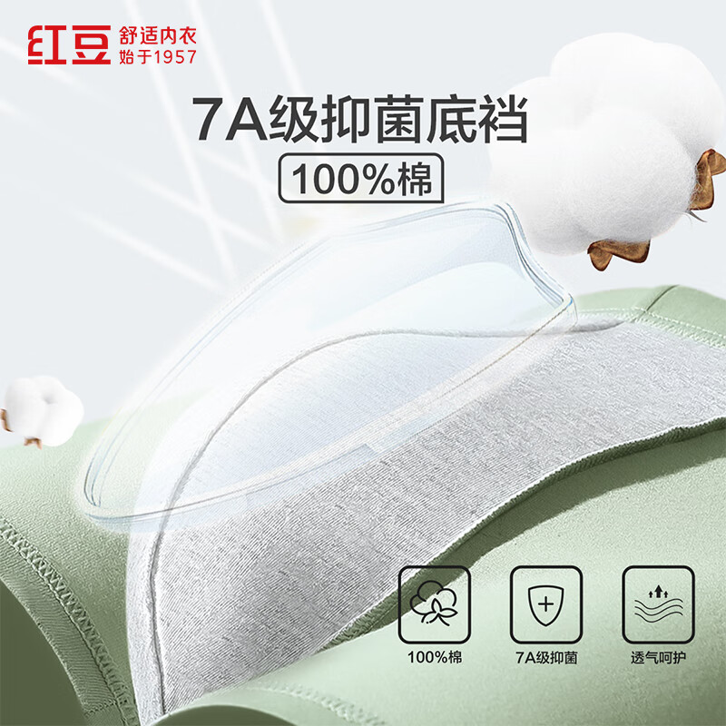 红豆内裤男纯棉印花7A抑菌透气全棉平角内裤4条装