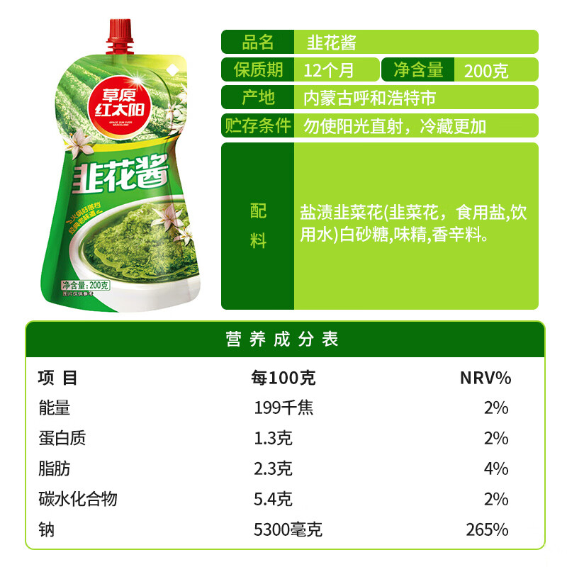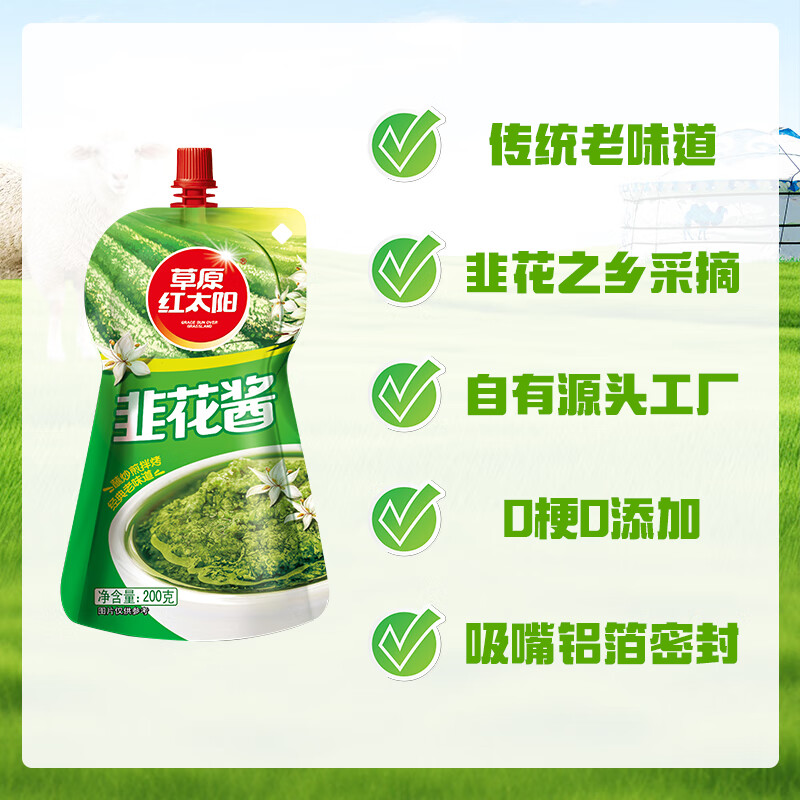 草原红太阳内蒙古韭菜花酱200g火锅蘸料调料涮羊肉烧烤火锅伴侣拌饭酱