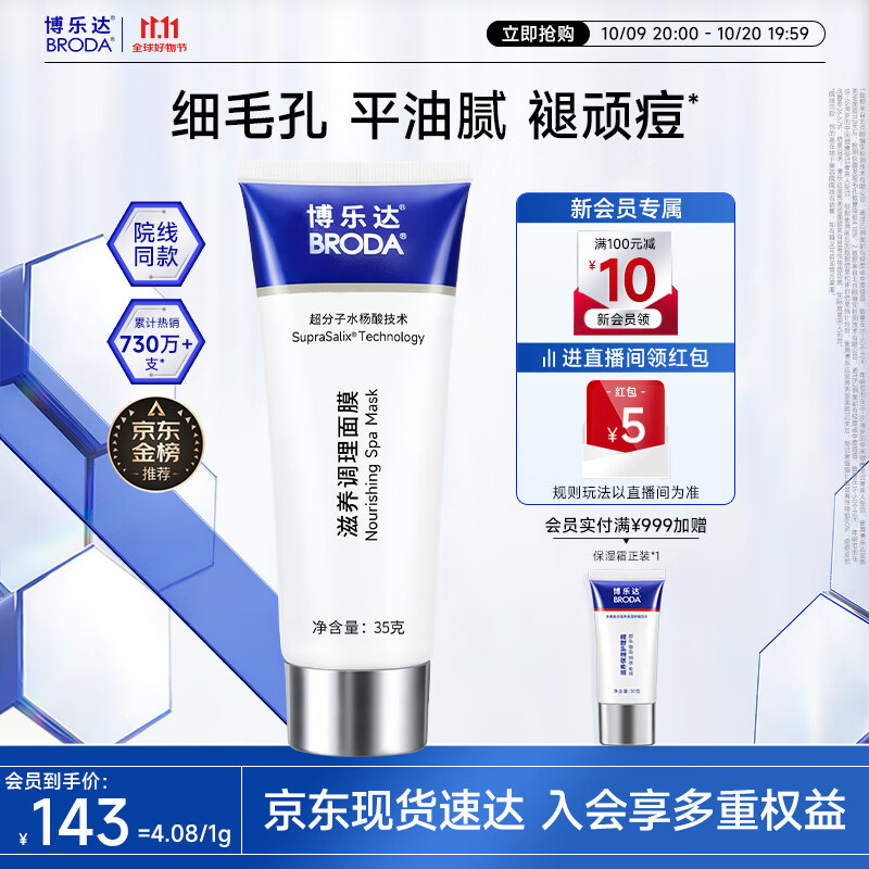 博乐达水杨酸祛痘痘去黑头去闭口粉刺滋养修护非果酸控油涂抹面膜35g
