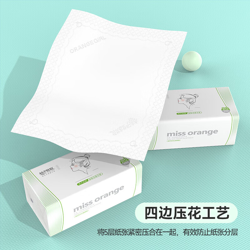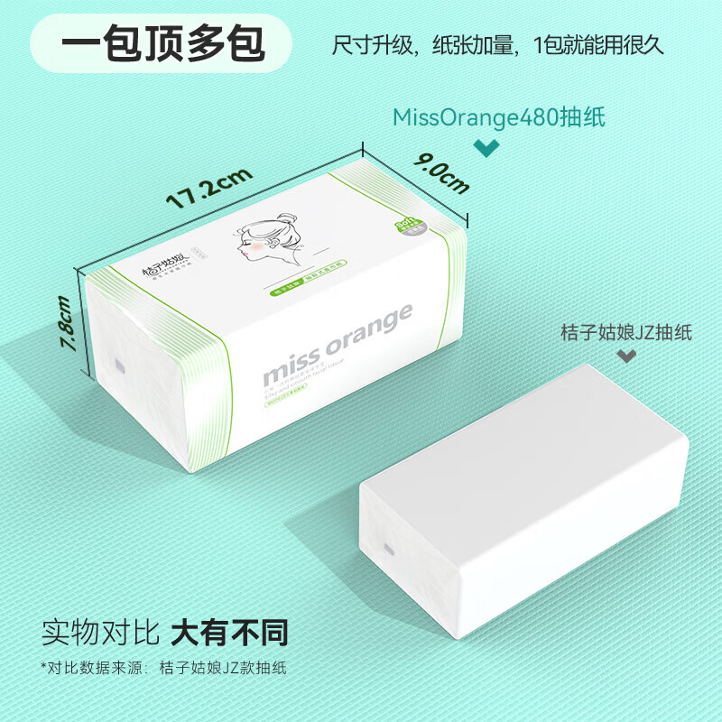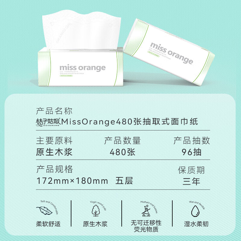 桔子姑娘大包抽纸480张加厚餐巾纸家用面巾纸母婴用纸整箱实惠装 5层 480张*3包 【L码体验装】