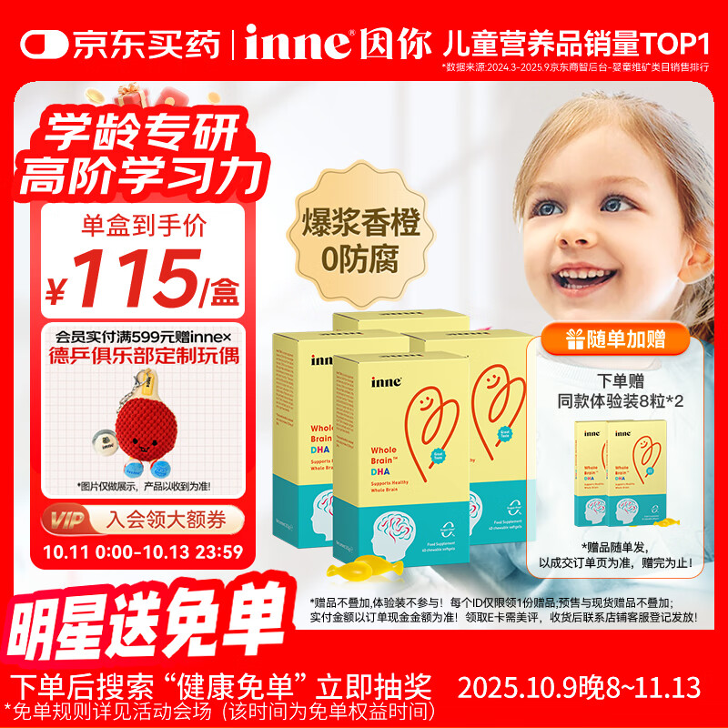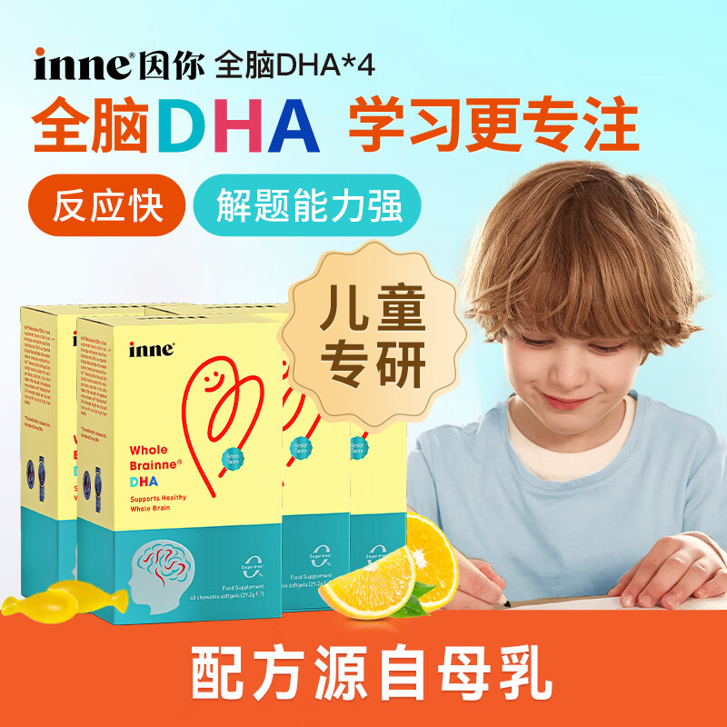 Inne因你全脑dha婴幼儿藻油儿童dha婴儿学生软胶囊40粒*4盒+8粒*2盒