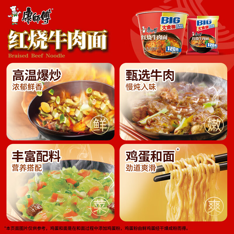 康师傅 方便面 大食袋红烧牛肉面五连包145g*5 泡面袋装速食 方便食品