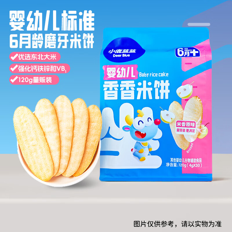 小鹿蓝蓝热门商品婴幼儿米饼宝宝零食儿童磨牙饼干初阶必选120g(60片)