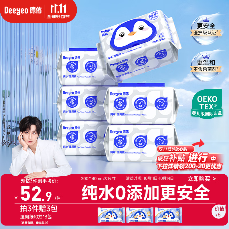 德佑EDI纯水湿厕纸80抽*6包 洁厕湿纸巾厕纸 孕婴皆可用 安全无刺激
