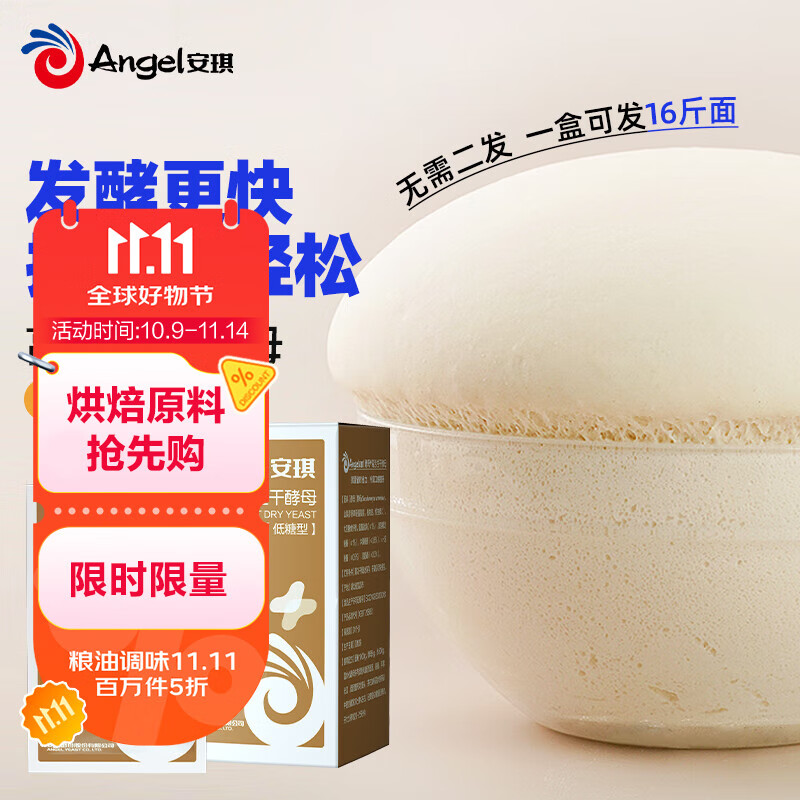 安琪【盒装】新一代高活性干酵母粉6g*8低糖型包子馒头发酵粉烘焙原料