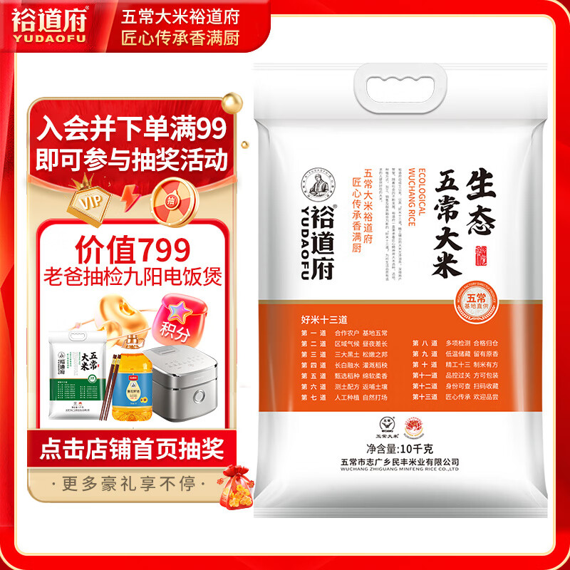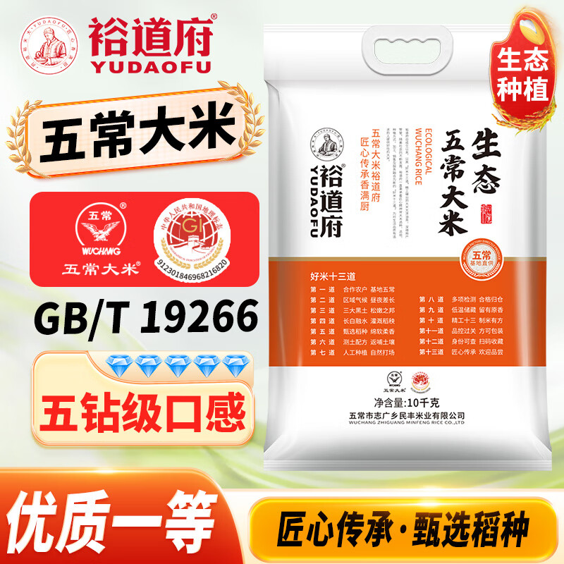 裕道府 生态五常大米 20斤 东北大米 10kg 京东自营