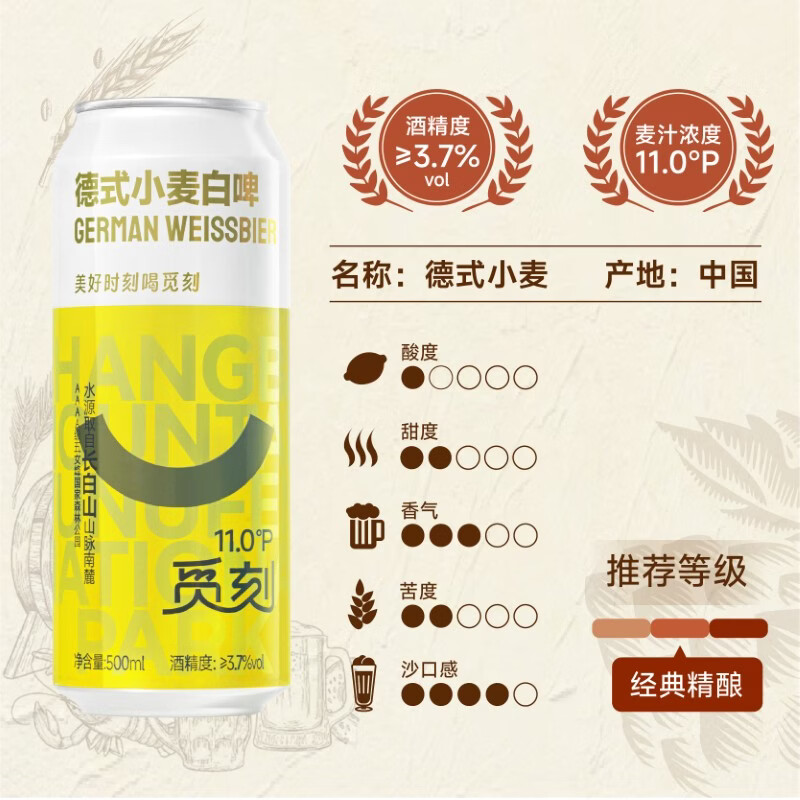 觅刻德式小麦白啤精酿啤酒全麦原浆500ml*12听整箱装浓郁麦香踏春送礼