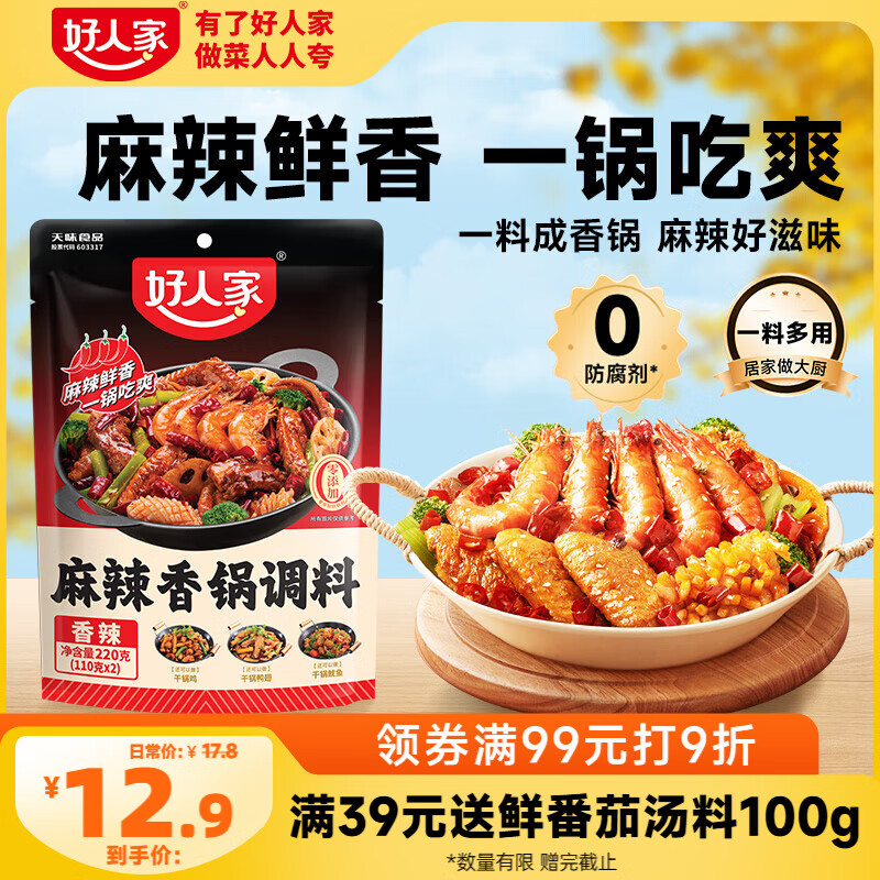 好人家 麻辣香锅香辣调料 干锅一料多用调味品220g 3-4人份