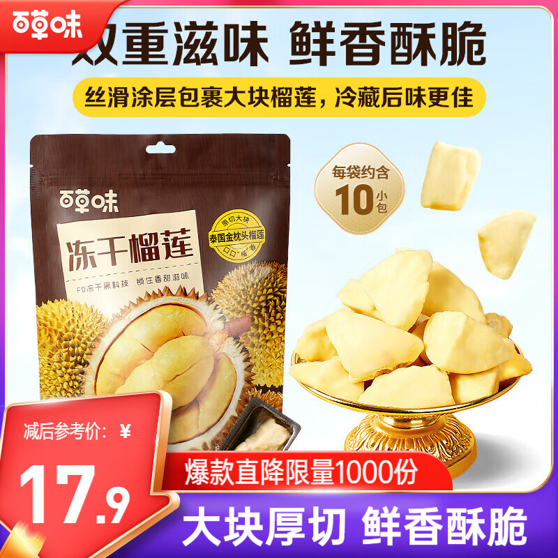 百草味冻干榴莲55g 泰国金枕头榴莲冻干水果干零食小包装