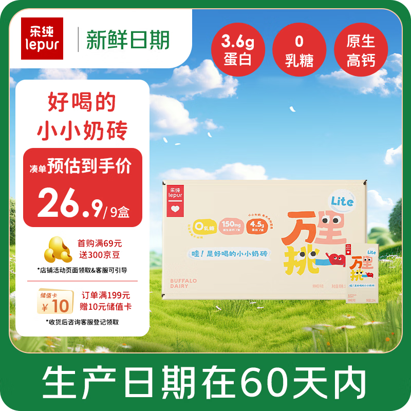 乐纯【新鲜日期】万里挑一0乳糖牛奶125ml*9盒4.5g蛋白/盒 儿童早餐奶