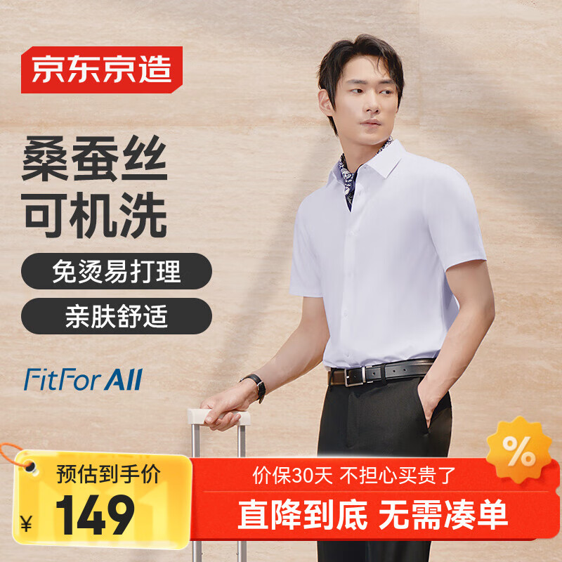 京东京造【桑蚕丝】短袖衬衫男白衬衫秋季莫代尔生日礼物 白色42
