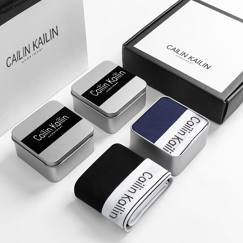 【CK制造商】高级内裤礼盒男莫代尔平角裤四角男士内衣短裤男朋友 黑+深灰+浅灰+蓝:莫代尔 4条 XL (175) 121-150斤