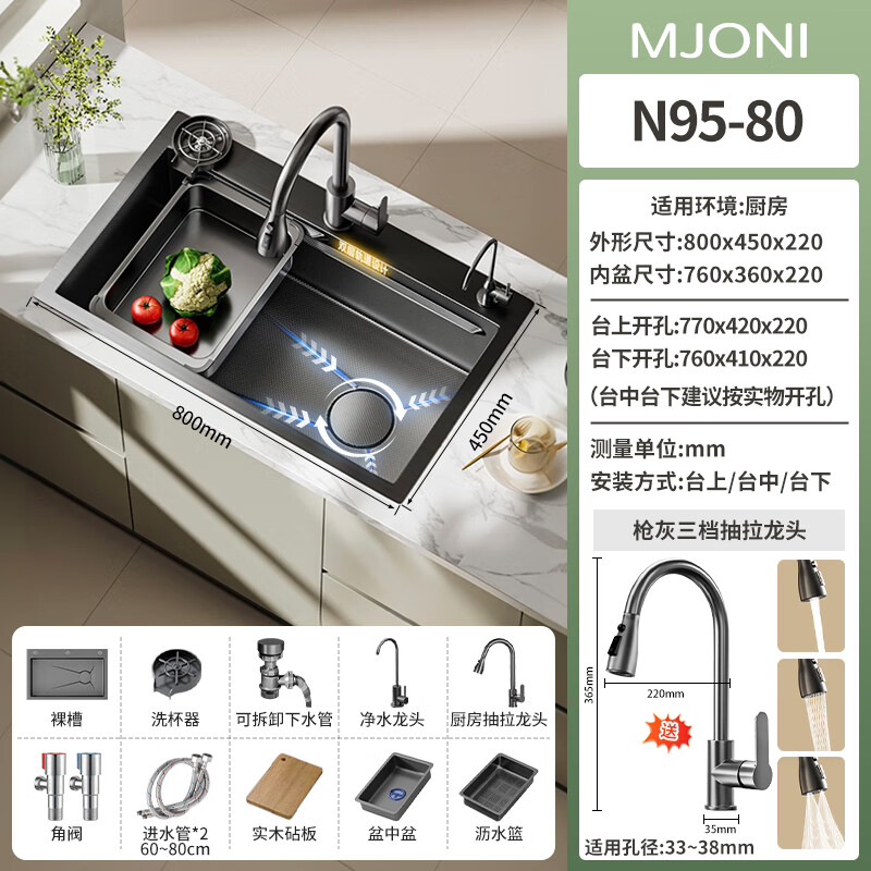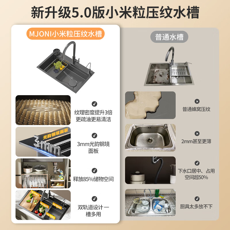 MJONI【国补立减15%】厨房水槽大单槽304不锈钢洗碗池 洗菜盆一体盆N95