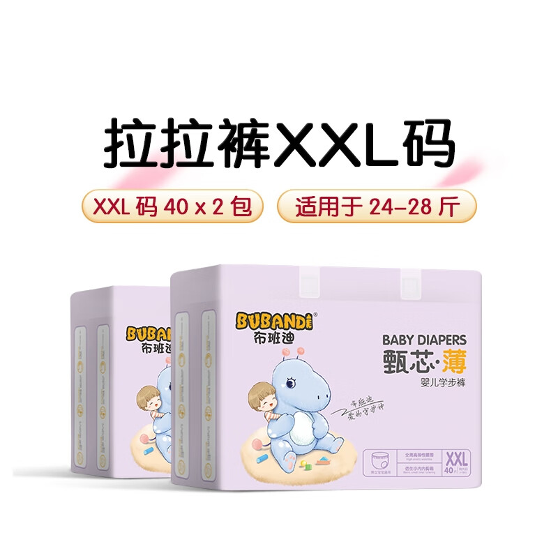 布班迪甄芯薄婴儿学步裤XXL80片医护级一体全包臀拉拉裤超薄透气尿不湿