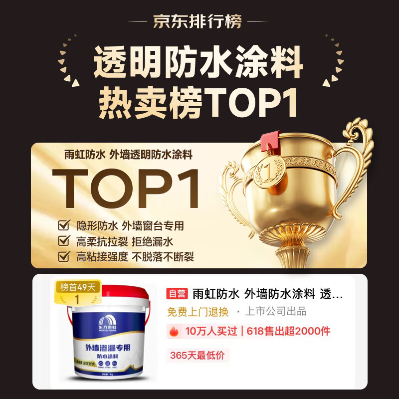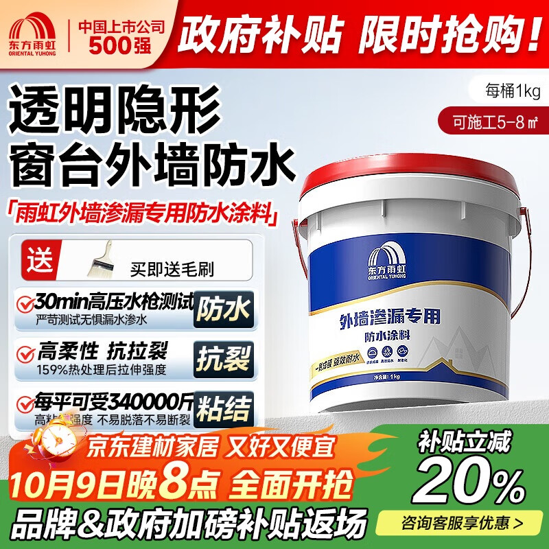 雨虹防水 外墙防水涂料 透明防水胶 补漏王 窗台补漏透明隐形防水 1KG
