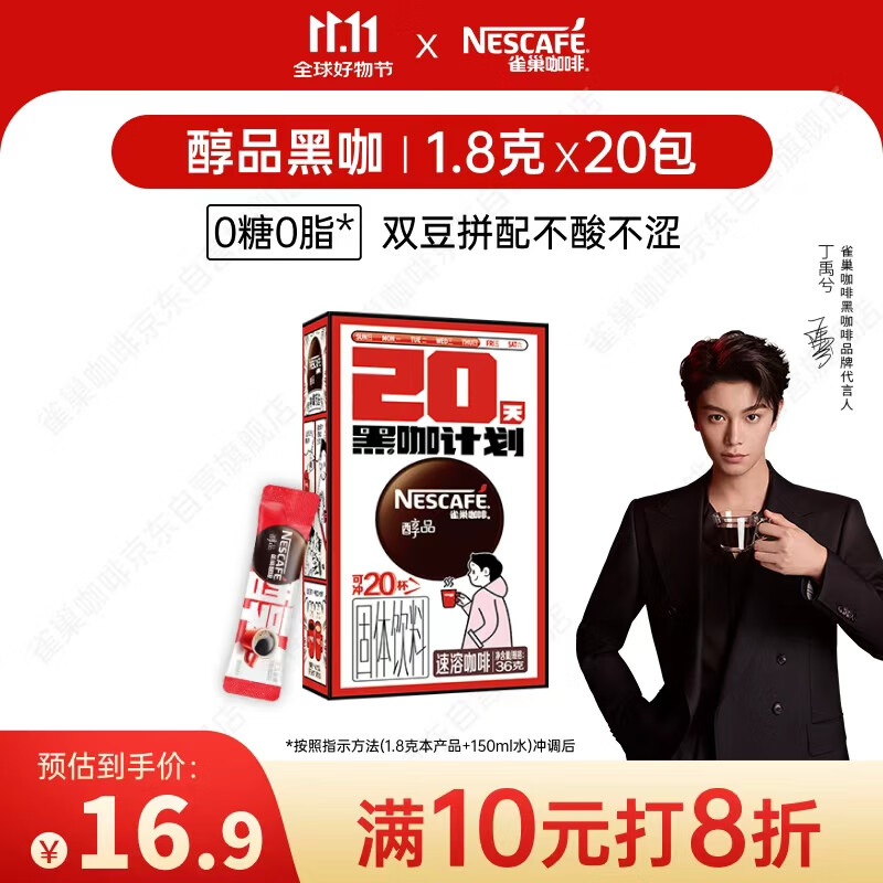 雀巢(Nestle)【代言人丁禹兮同款】醇品速溶美式黑咖啡0糖0脂*20包*1.8g