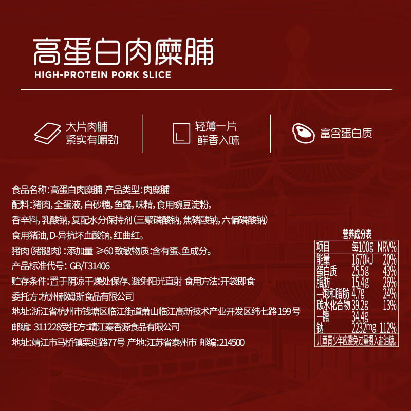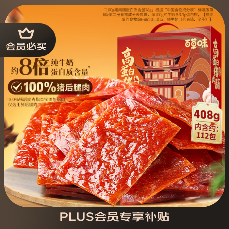 百草味高蛋白猪肉糜脯408g/约112包 肉干肉脯休闲零食小吃礼盒 送礼团购