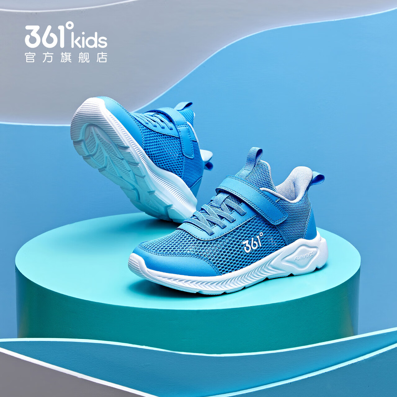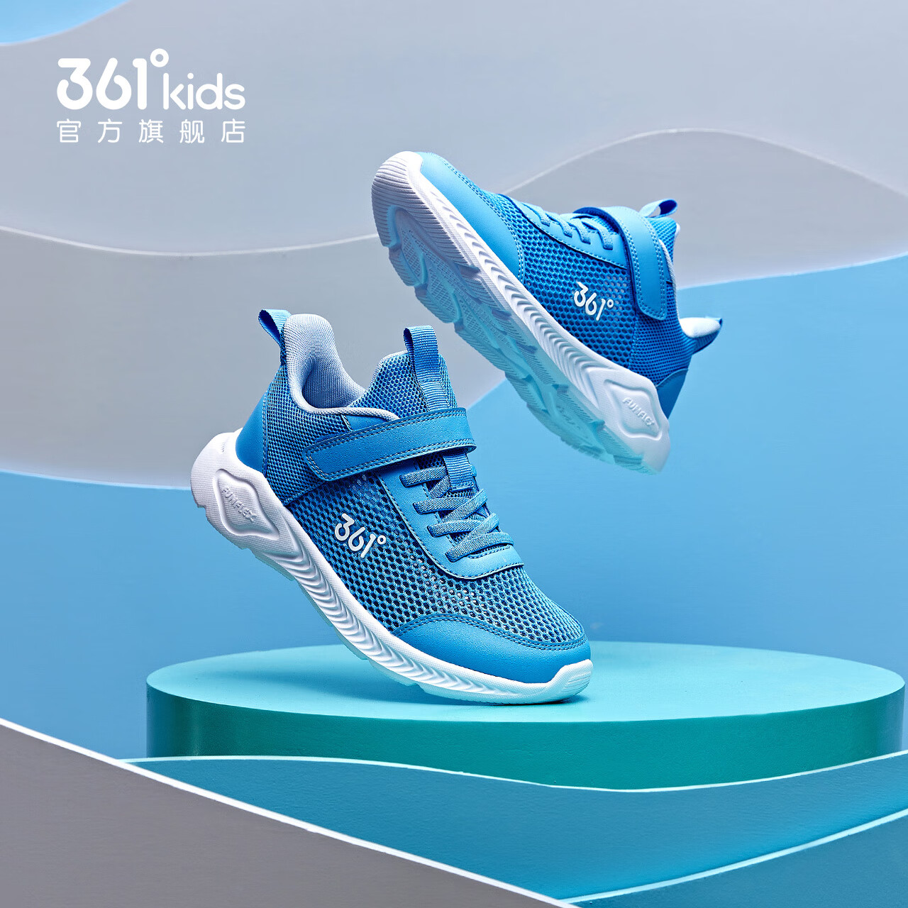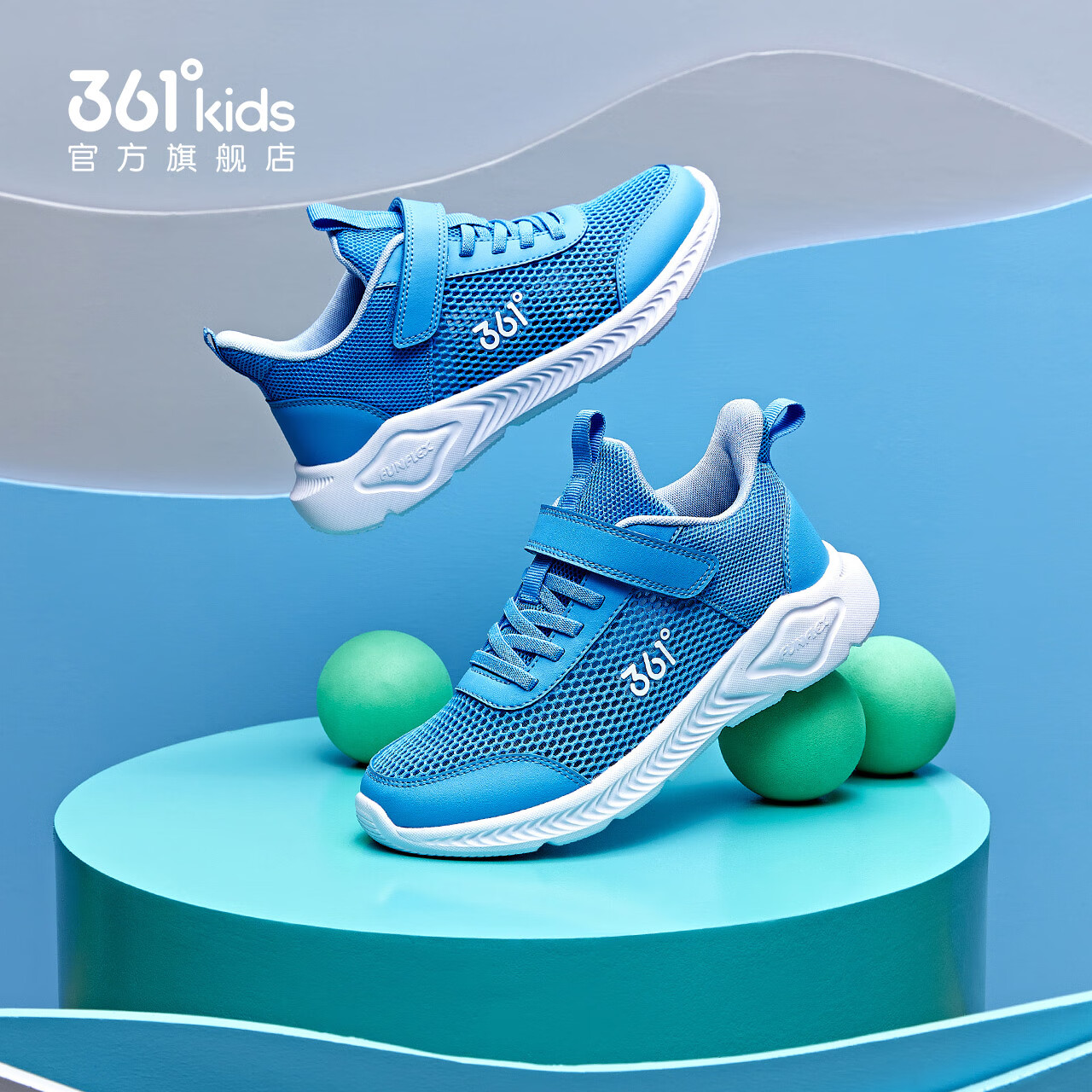 361°儿童运动鞋男童跑鞋夏季大网孔轻便魔术贴女童休闲透气运动鞋 【大网孔】静心蓝色 42