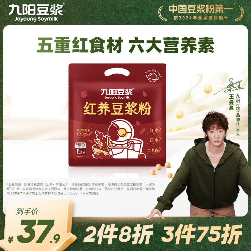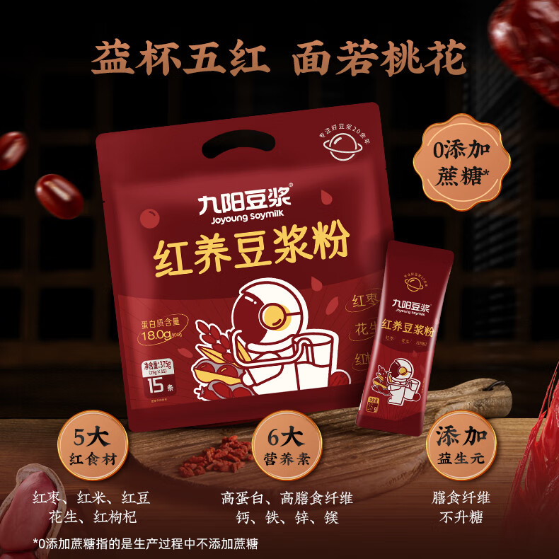 九阳豆浆红养豆浆粉15条*25g五红豆浆粉红豆红枣豆浆低甜豆浆早餐豆浆