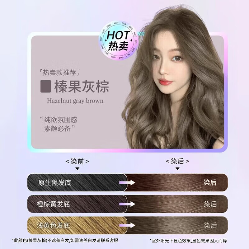 润丝丹染发剂泡泡天然植物纯遮盖白发自己在家染男女染发膏榛果灰棕