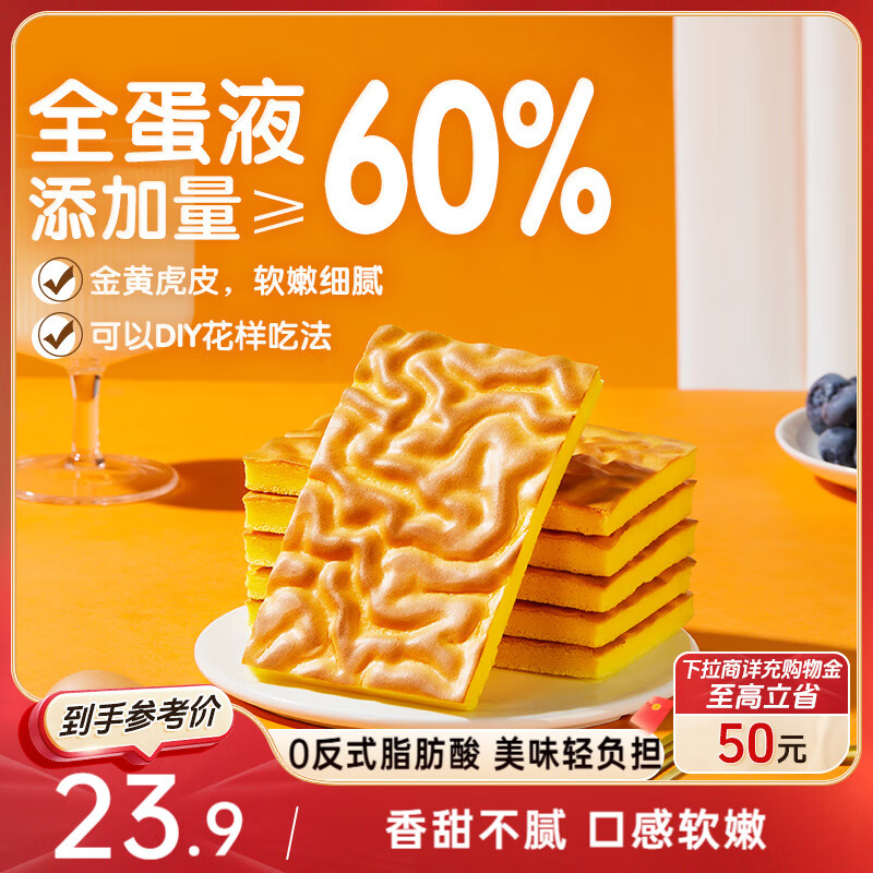 三只松鼠DIY虎皮蛋糕片400g 面包营养早餐蛋糕下午茶办公室解馋点心零食