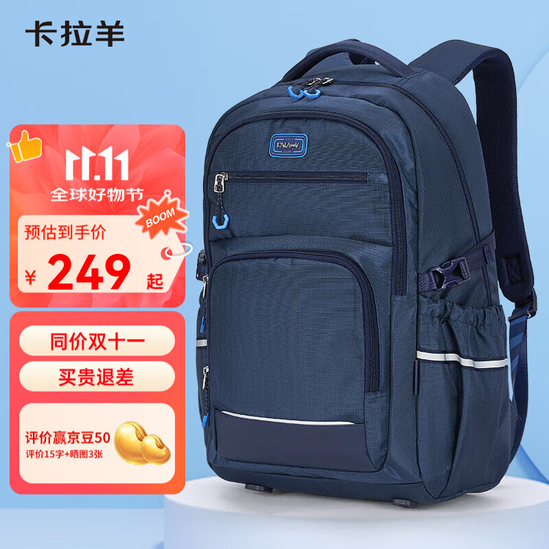 卡拉羊(KALA·Y)中学生书包大容量初中生双肩包男女学生旅行休闲背包 5502藏青【容量34L】 适合初高中生