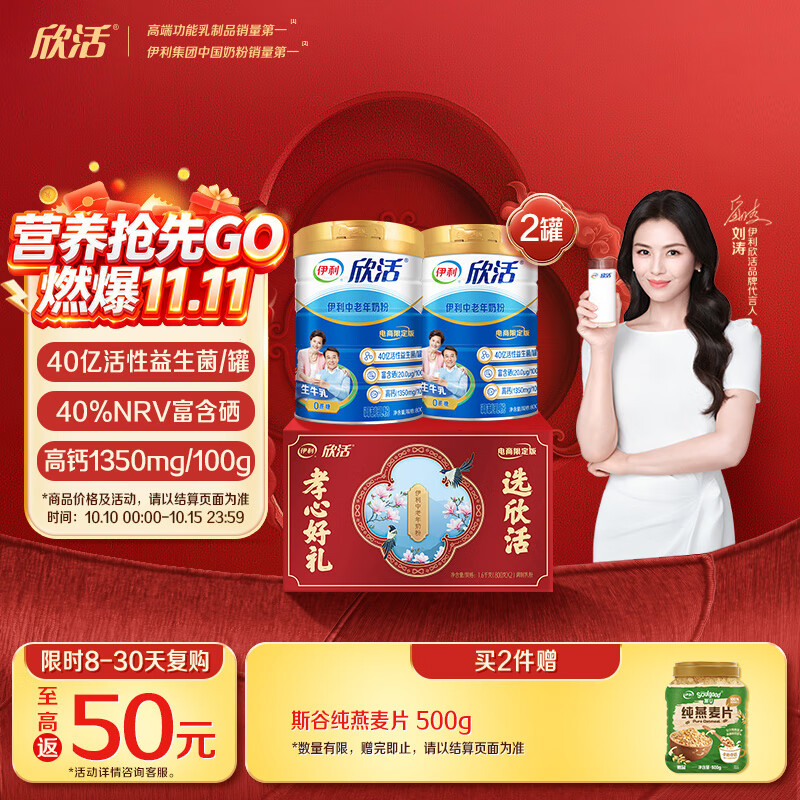 伊利欣活刘涛同款 中老年奶粉礼盒 老年人营养品送礼 富硒高钙 800g*2